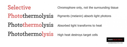 ทฤษฎีหรือหลักการในการกำจัดขนด้วยเครื่องเลเซอร์ คือ Selective Photo thermolysis หมายถึง การเลือกใช้ช่วงคลื่นเลเซอร์ (Wavelength)ที่เหมาะสมกับเป้าหมาย โดยไม่ทำลายเนื้อเยื่อรอบข้าง เป้าหมายในการกำจัดขนคือเม็ดสีหรือเมลานิน ซึ่งเมื่อได้รับพลังงานจากเลเซอร์จะดูดซับ แล้วเปลี่ยนเป็นพลังงานความร้อน เมื่อมีการสะสมความร้อนรากขนจะถูกทำลาย หากมีช่วงคลื่นเลเซอร์ 940 nm ด้วยจะทำให้เส้นเลือดเล็กๆที่ไปเลี้ยงรากขนเกิดการหดตัวลงด้วย ซึ่งจะส่งผลให้ไม่มีการส่งผ่านสารอาหารไปยังบริเวณรากขน จึงส่งผลให้ขนใหม่เกิดขึ้นช้าลงด้วย